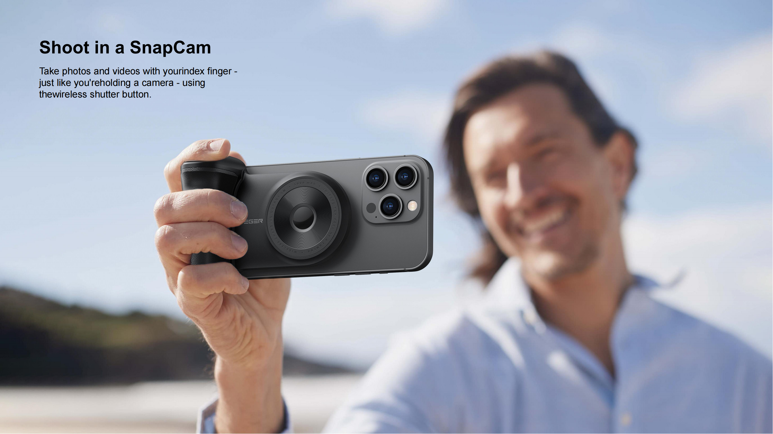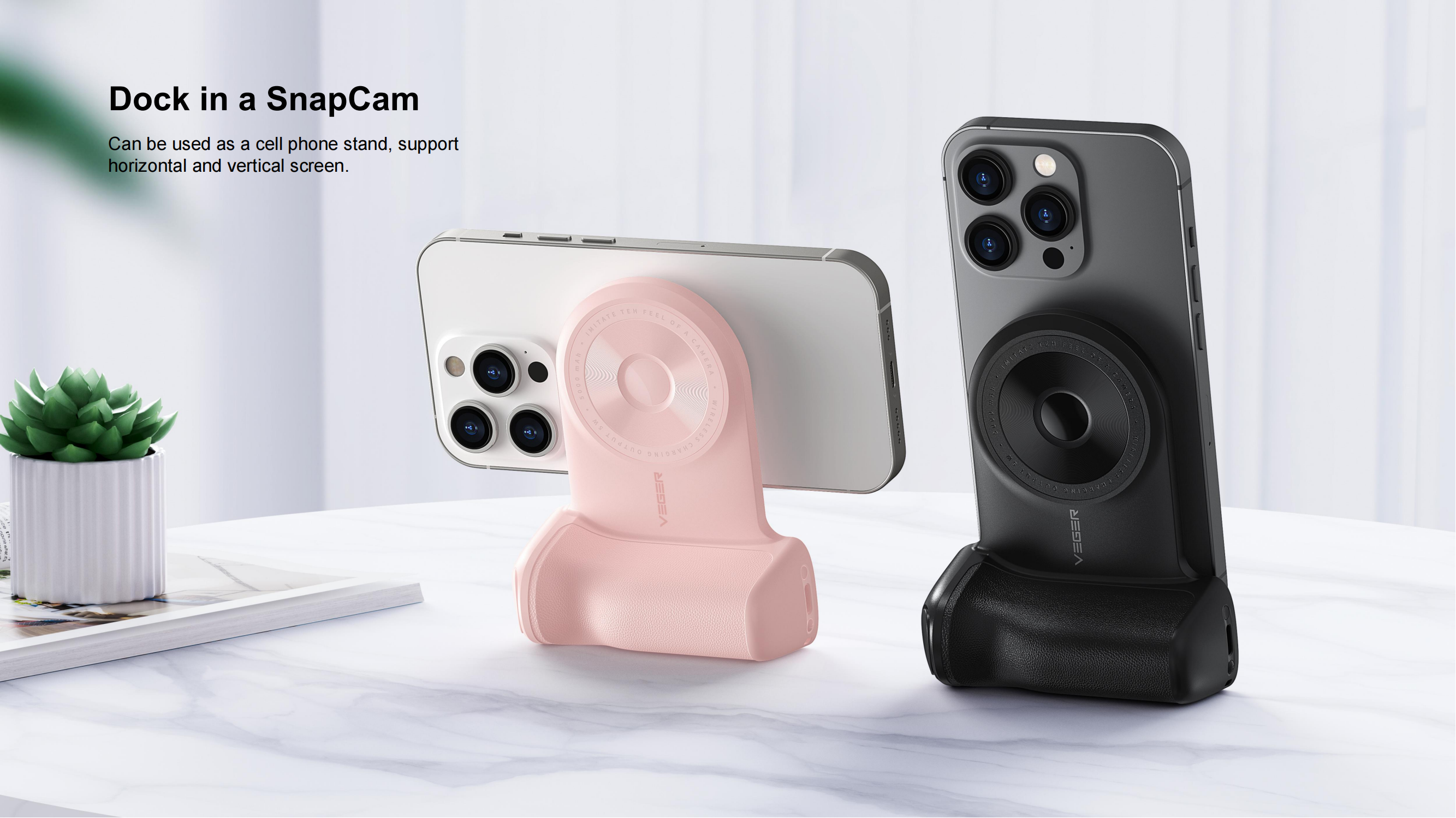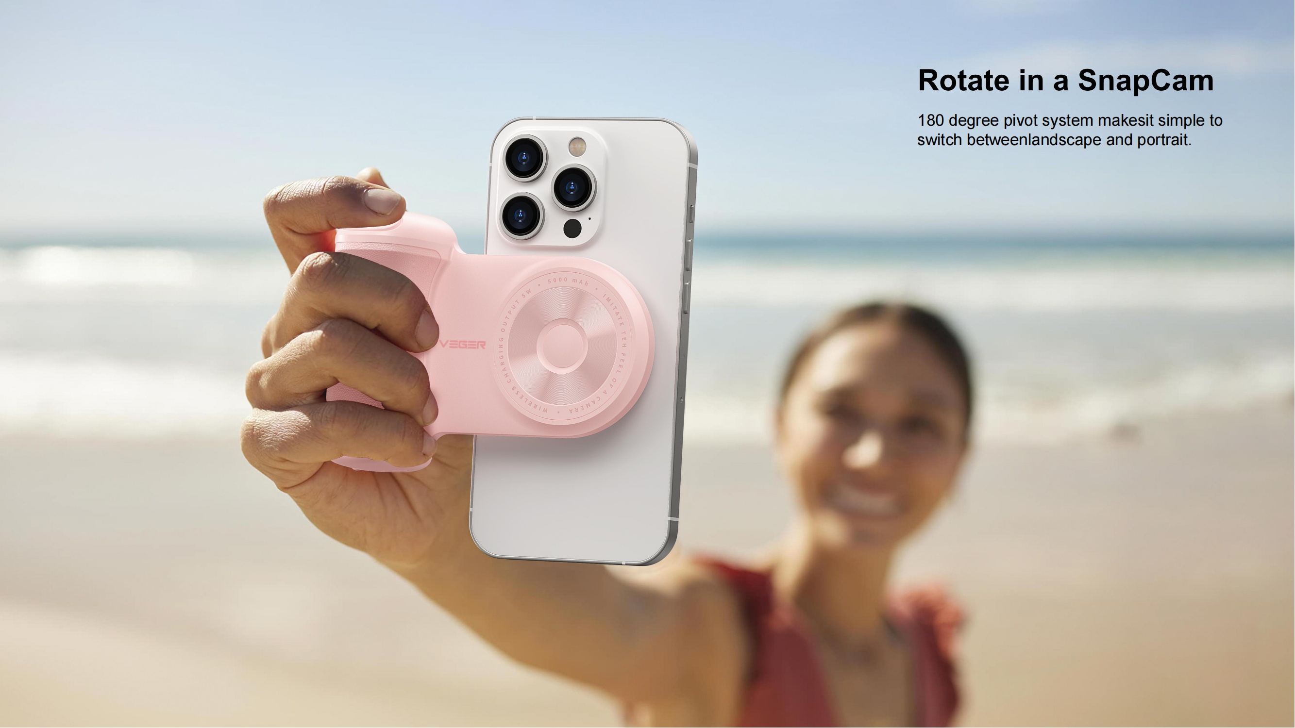 Veger W0569 SnapCam 5000mAh Wireless Charging Power Bank with Bluetooth Camera Controller-Black