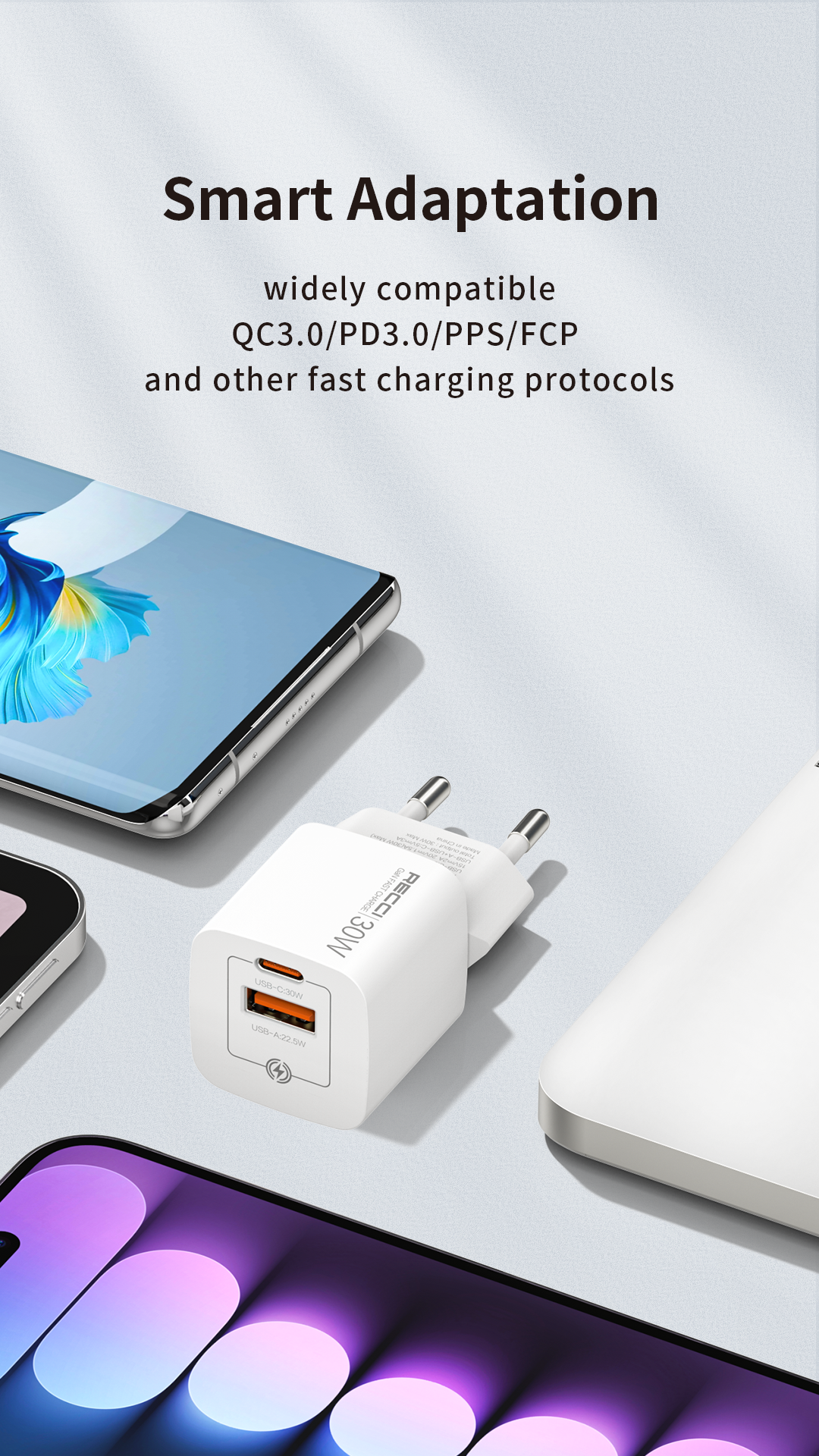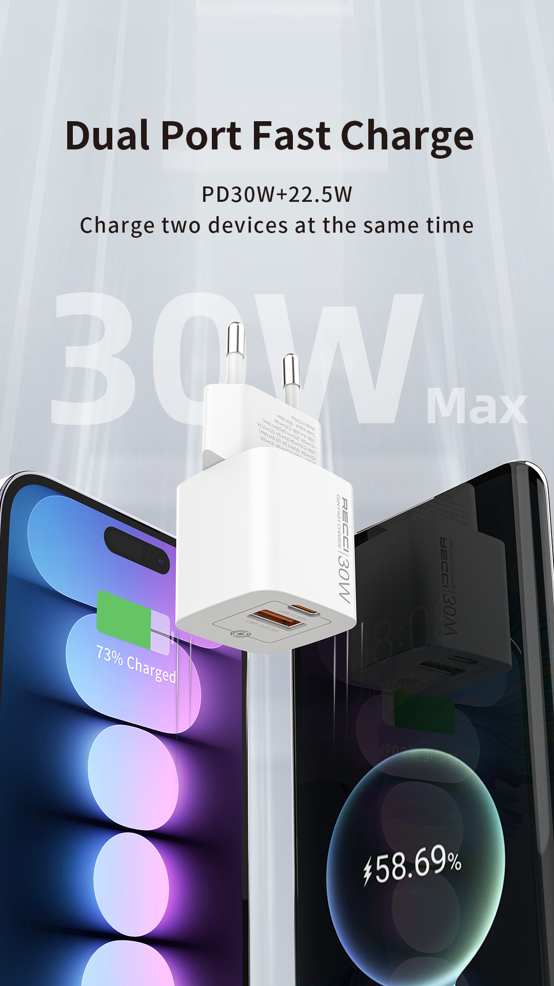 RECCI RC70E 30W PD Dual-Port Charger - Fast, Flexible, and Stylish Charging for All Your Devices