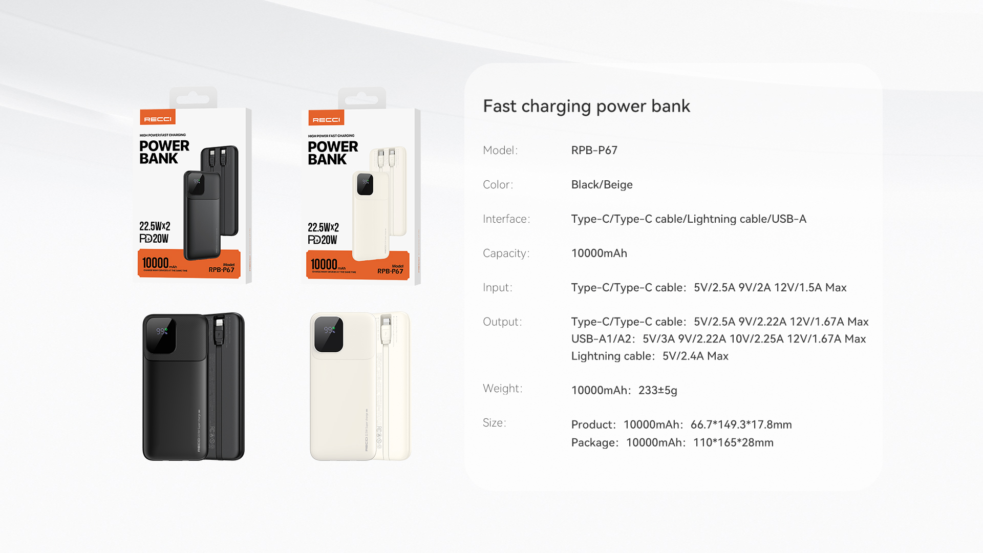 Stay powered on the move with the RECCI RPB-P67 10000mAh Power Bank — designed for modern lifestyles with high-speed charging, sleek aesthetics, and multi-port versatility. Whether you're commuting, traveling, or just managing a busy day, this portable charger delivers efficient power wherever you go.